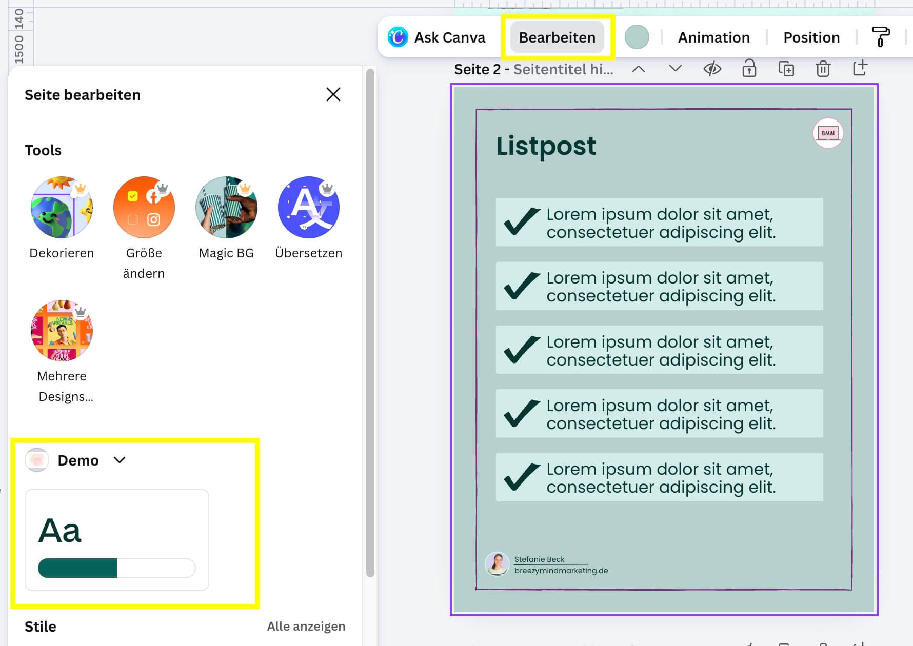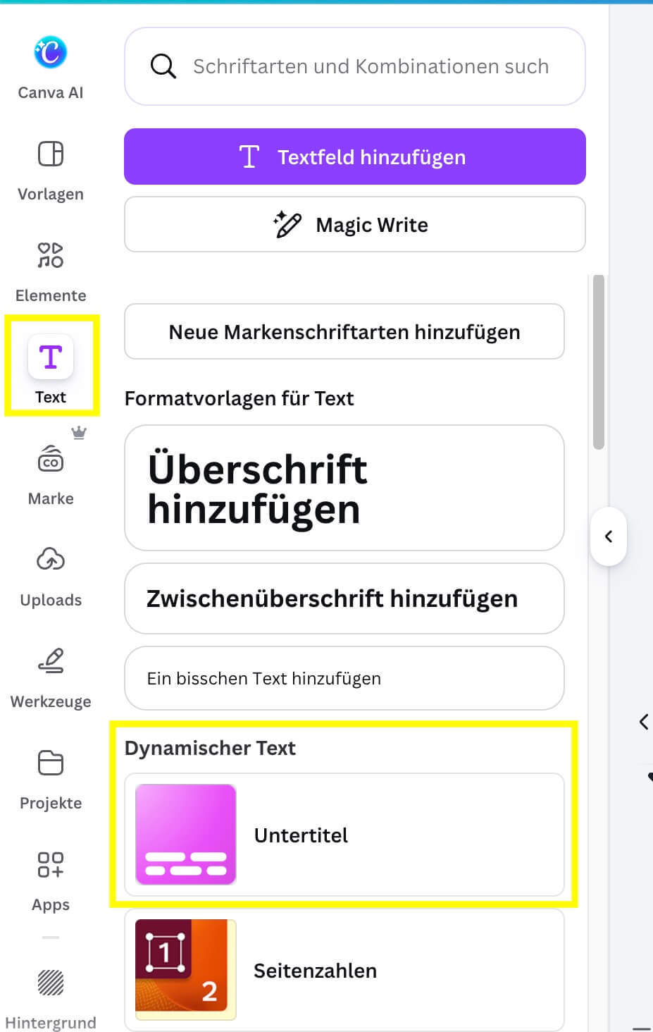 - Texterstellung mit Canva AI