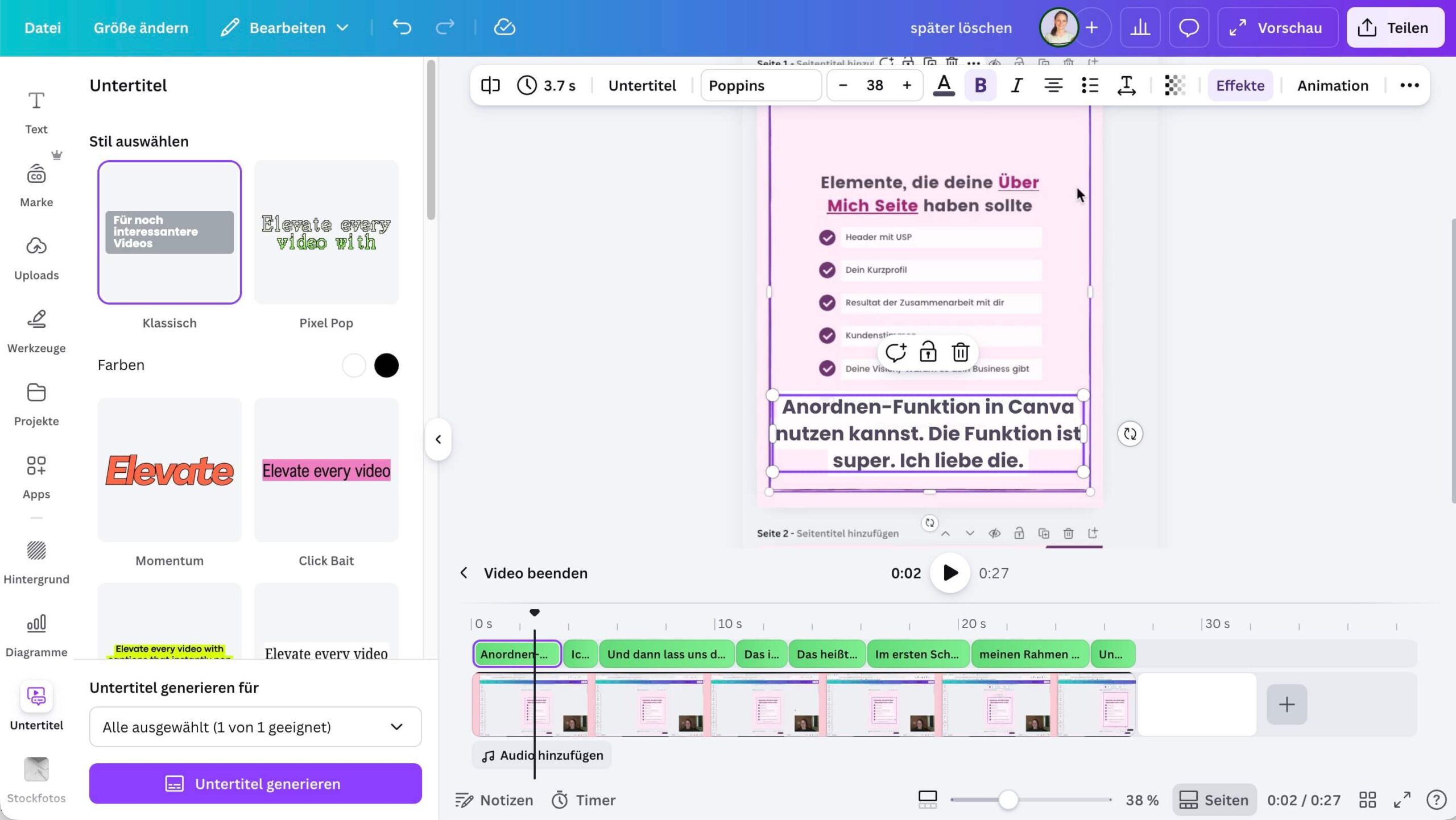 → Dennoch eine smarte Lösung und für Leute mit Canva Pro Abo, die tiefer in das Animationsgame einsteigen wollen, eine Bereicherung.