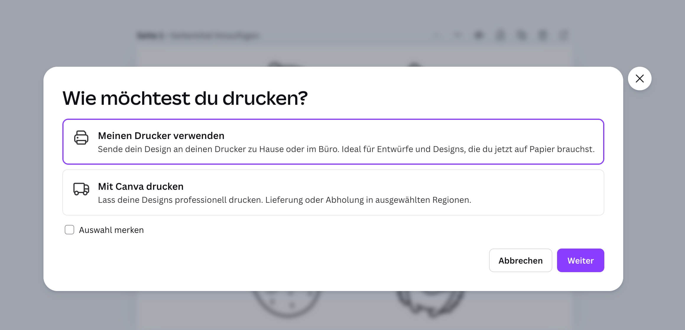 ###Screenshot über Canva Drucken Funktion