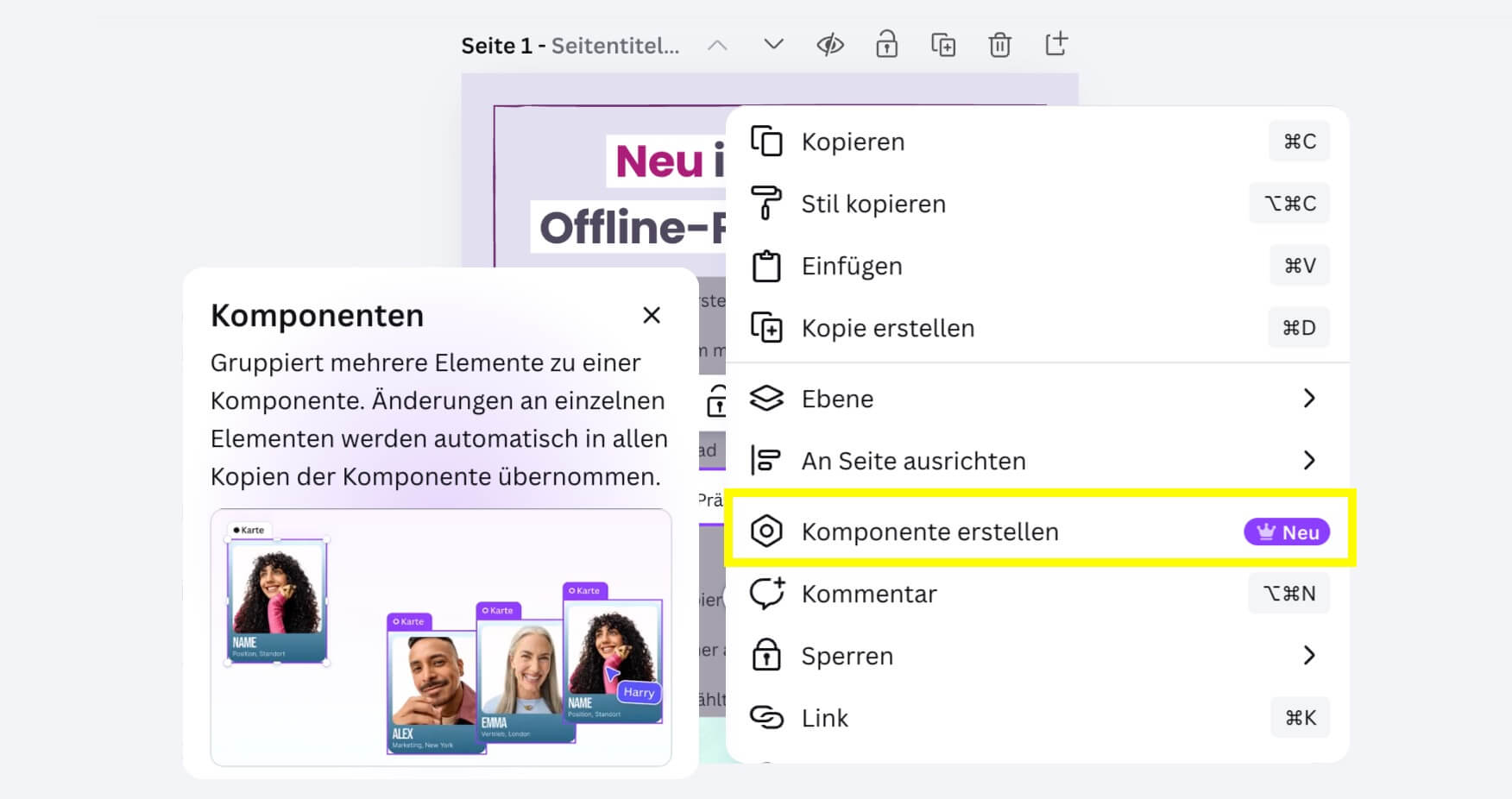 Verfügbar sind Komponenten ab Canva Pro. Canva Free kann Komponenten nur ansehen.