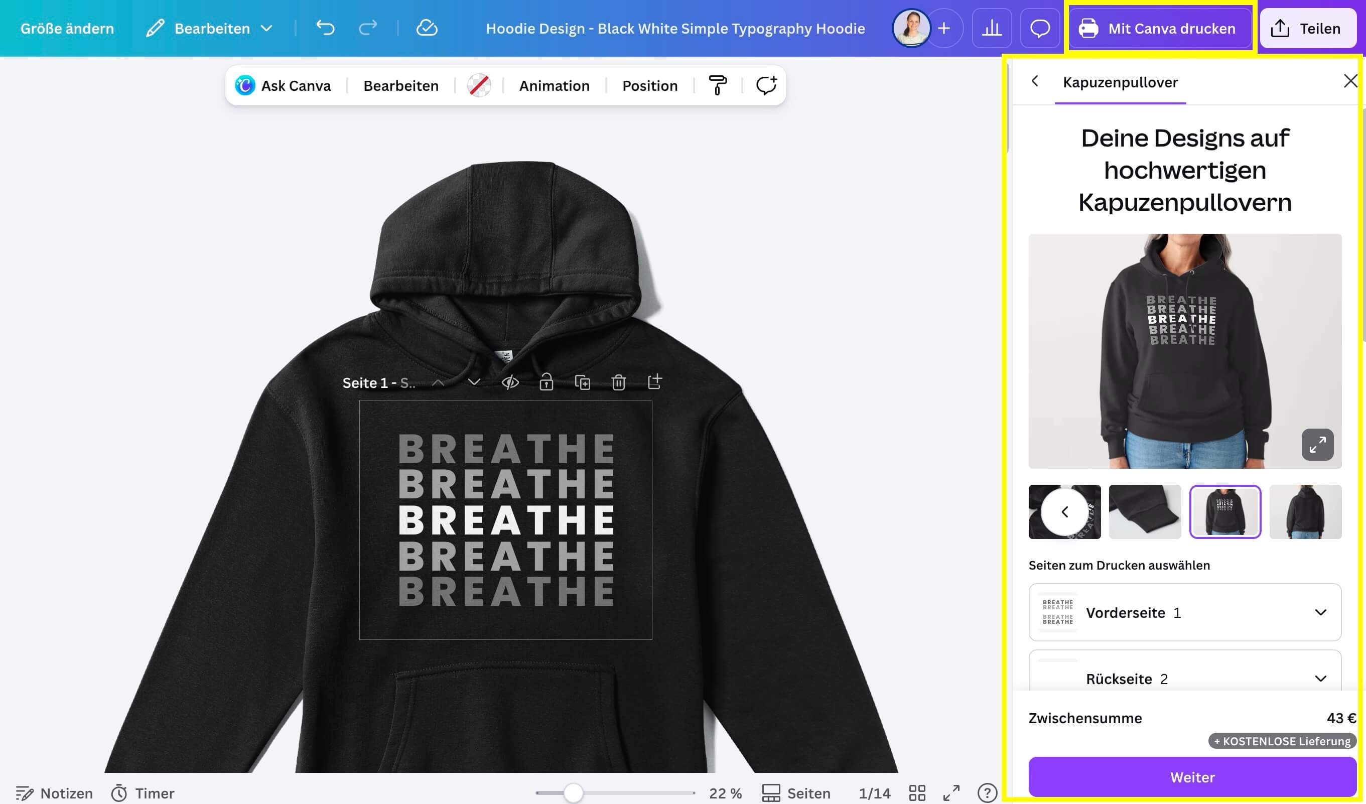###Screenshot Drucken direkt aus Canva
