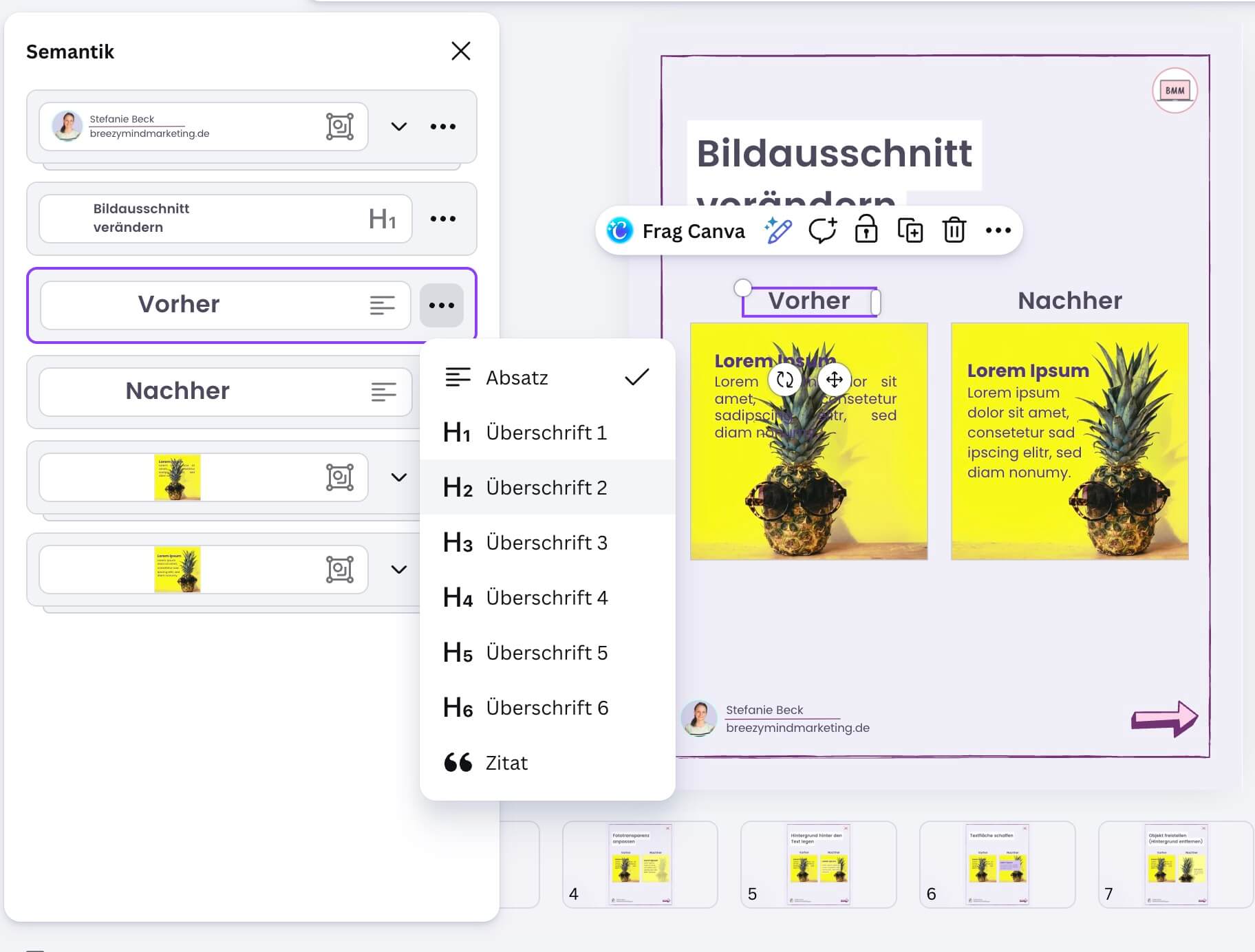 💡Also öfter mal den Rechtsklick in Canva ausprobieren.