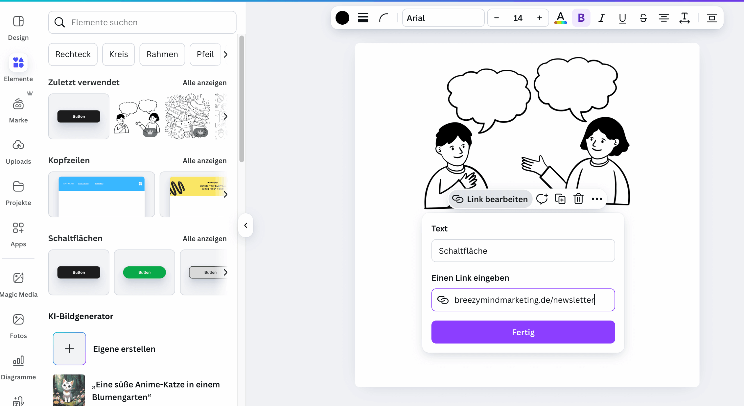 - Das Canvas startet im 1:1 Format, erweitert sich aber automatisch, wenn neue Inhalte eingefügt werden
